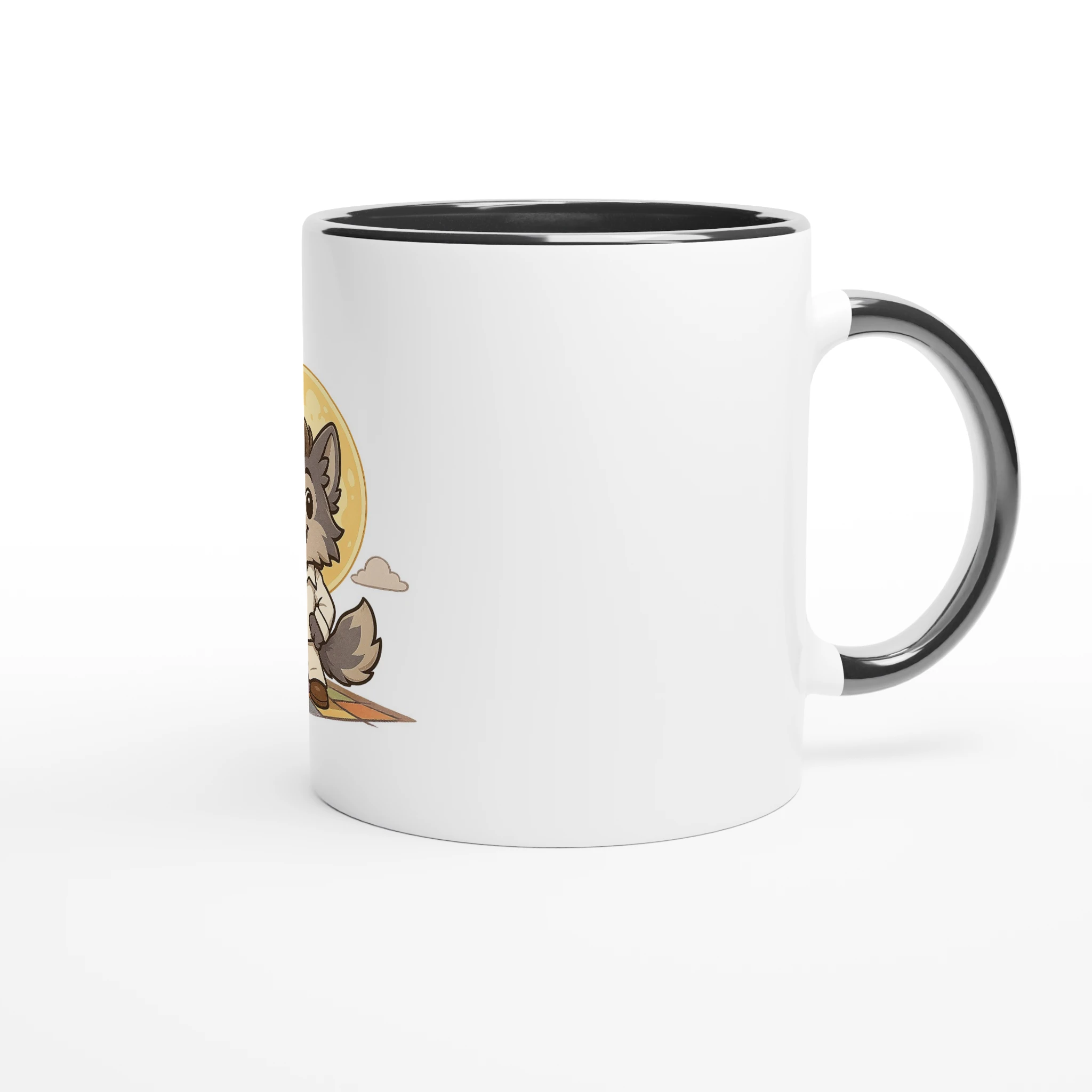 This beautiful ceramic mug is perfect for any event of the day. Your morning coffee, a hot chocolate, or any other hot beverage you enjoy. The mug is glossy white with a colored rim, inside, and handle. The prints come out beautifully and vividly on it. The print retains its quality and luster when used in both microwaves and the dishwasher.